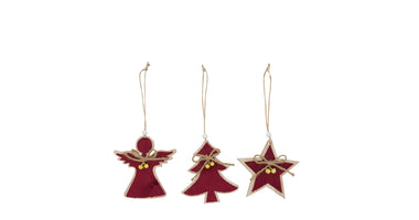 Hanger tree, angel, star ply wood 11x0.3x12cm 3 Mix Red