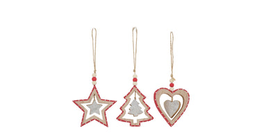 Hanger tree, heart, star mdf 9x8.5x1cm 3 mix Red FSC 100%