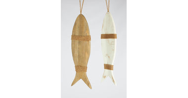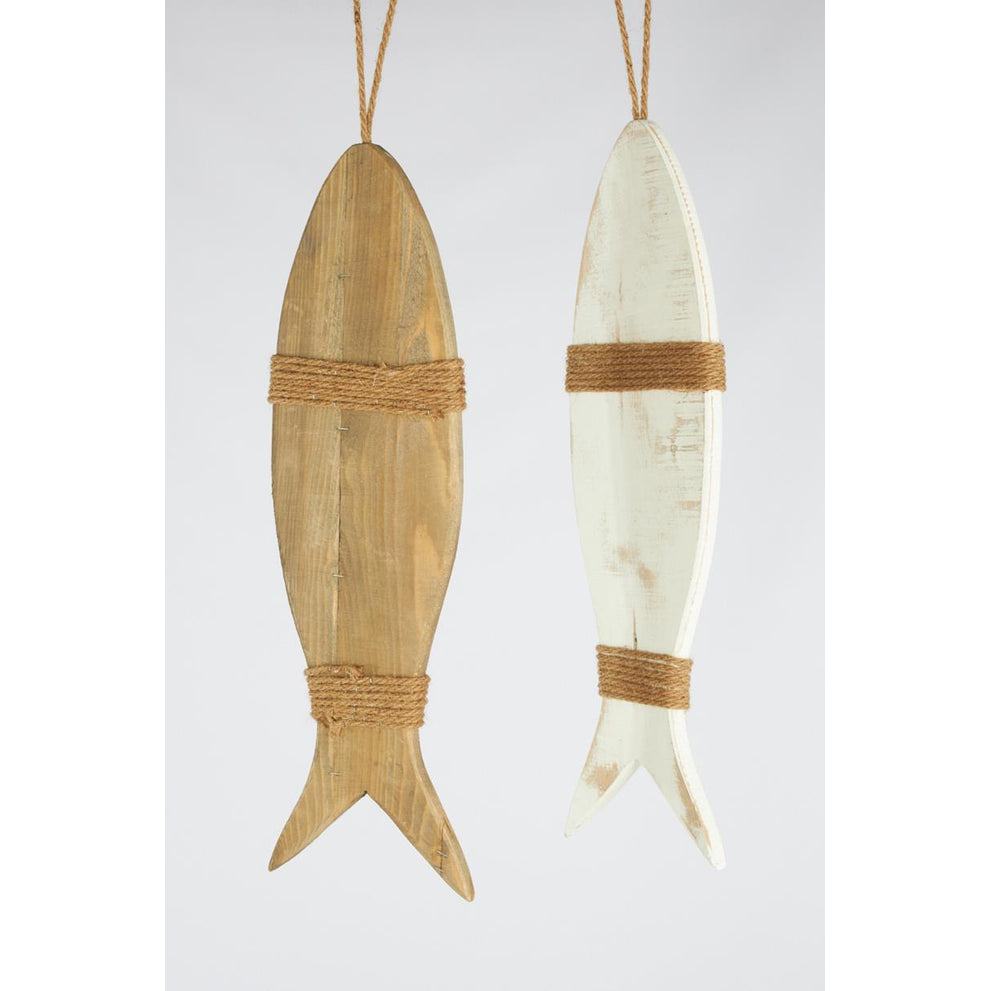Hanging fish historic wood 58x16.5x1.5cm Natural/White Mixed