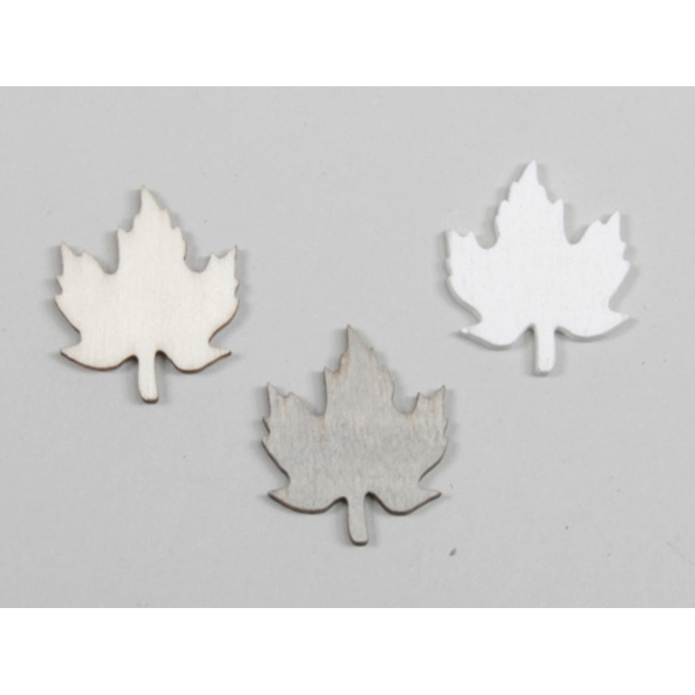 Houten bladeren - grijs/naturel/wit - 60 stuks - 3 cm