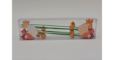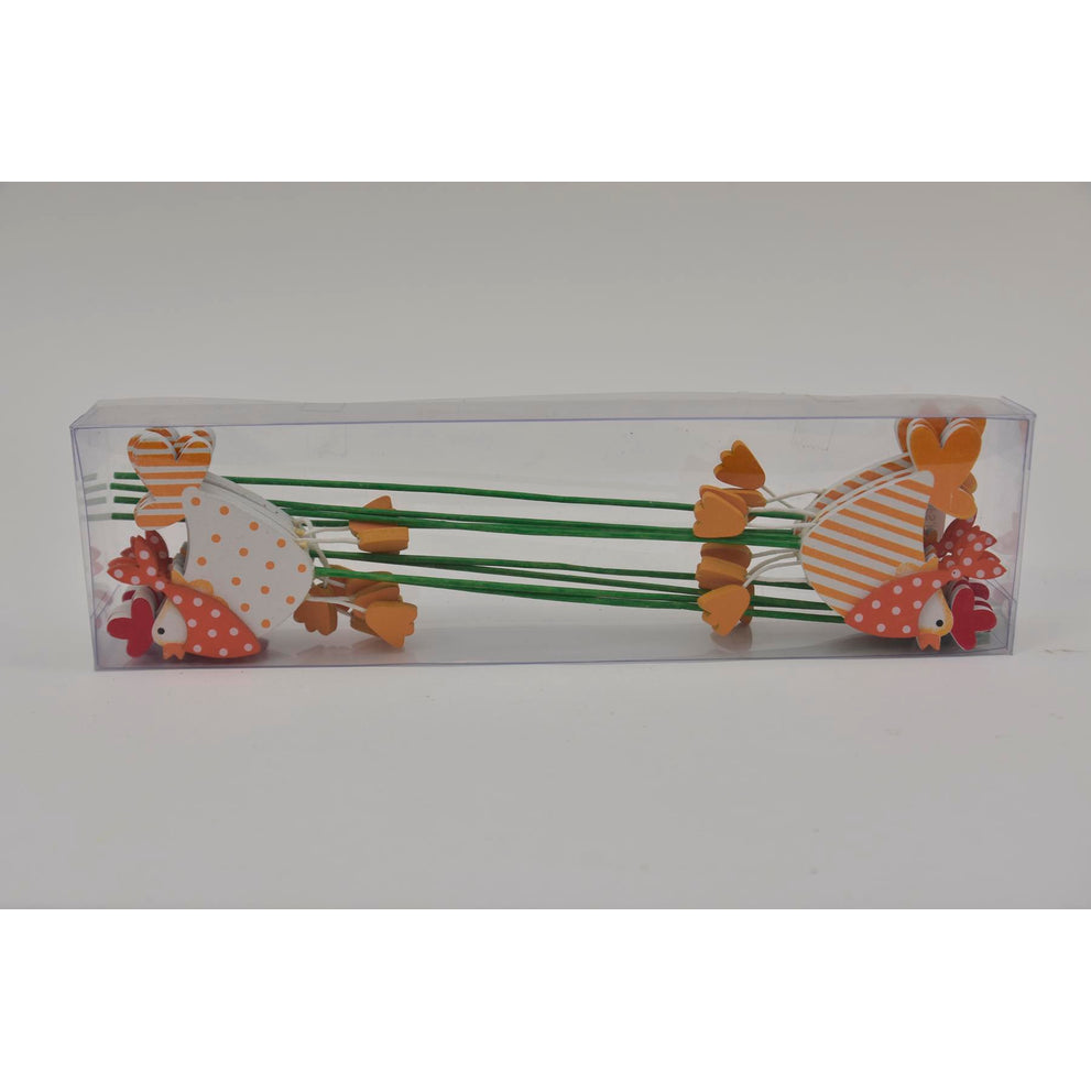 Houten Kip Op Stok Oranje 7x6cm - 8 Stuks