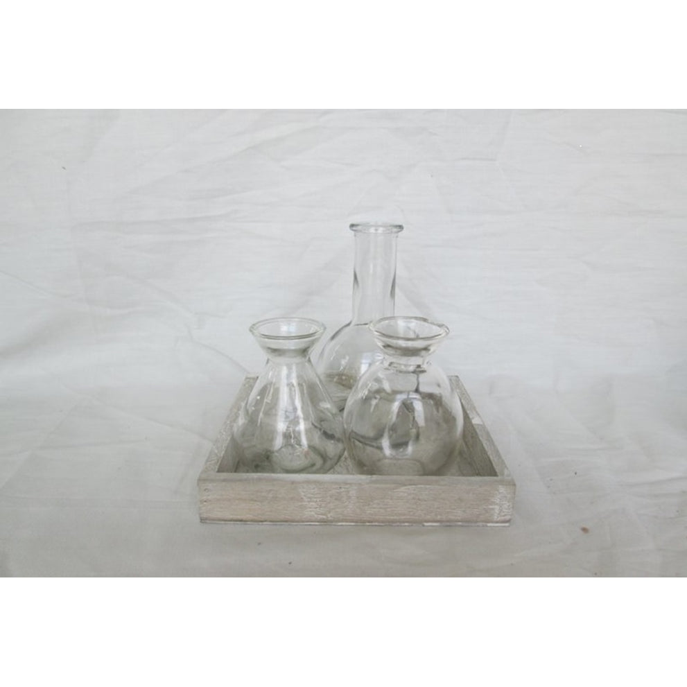 Houten tray grijs met 3 fles mix 17x17x16cm