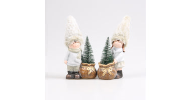 JONGEN EN MEISJE M/KERSTBOOM LED GROEN 11.5X6.5X20 CM AARDEWERK ASSORTIE - PER STUK