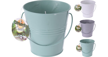 KAARS CITRONELLA METALEN EMMER D10 H10CM 3 KLEUREN ASSORTIE
