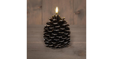 KAARS DENNENAPPEL LED 3D VLAM OP BATTERIJ MET TIMER 12.5X10.5CM BRUIN