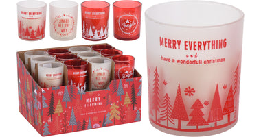 KAARS IN GLAS XMAS D5 H6CM 4 ASSORTIE DESSIN