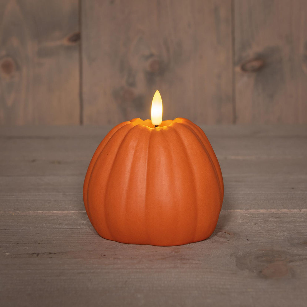 KAARS POMPOEN LED 3D VLAM OP BATTERIJ MET TIMER 8.5X11CM ORANJE
