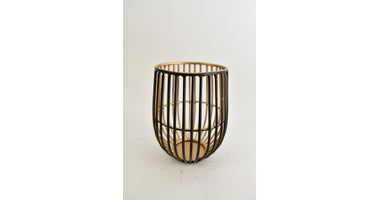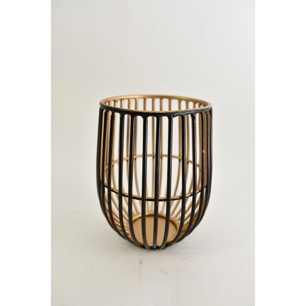 KAARSENHOUDER DRAADSTAAL ZWART-GOUD XS 10X10X13 CM