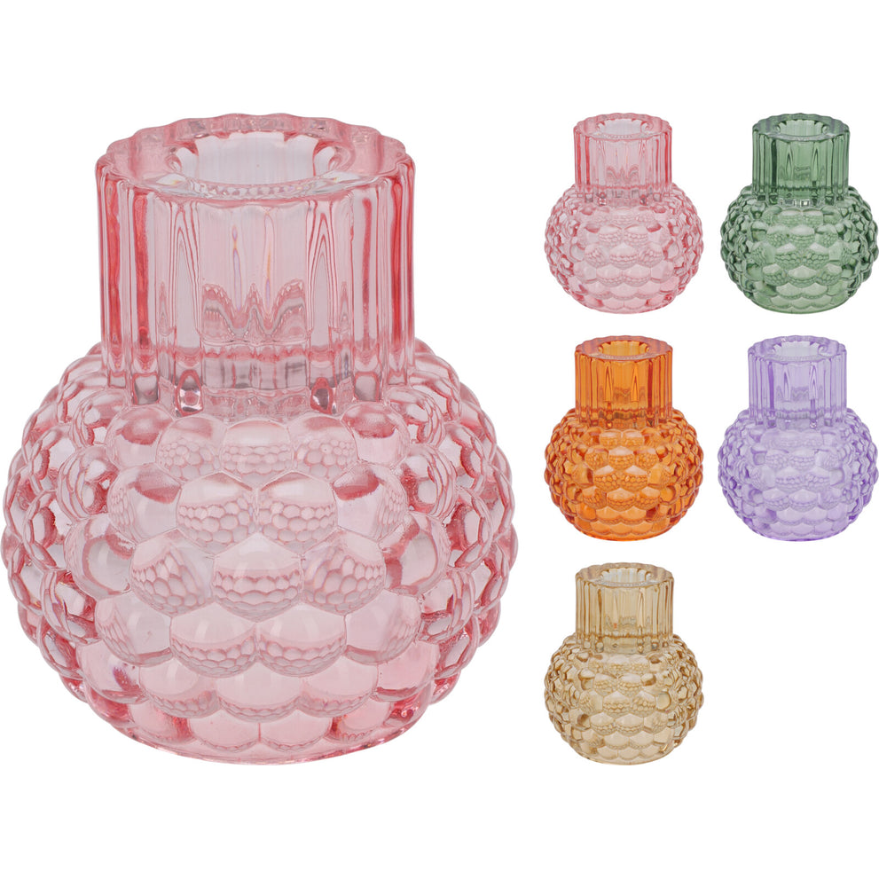 KAARSHOUDER MET BUBBELS D8,7 H7,5CM 5 ASSORTIE