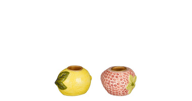 Kandelaar aardbei citroen roze geel 2 assorti - l7xb6xh5cm