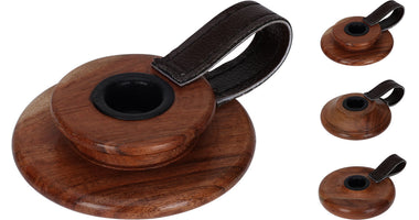 KANDELAAR ACACIA HOUT MET LEREN HANDVAT 12X10X4CM 3 ASSORTIE