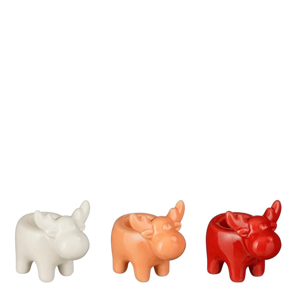Kandelaar eland rood wit oranje 3 assorti - l7,5xb4,5xh6cm