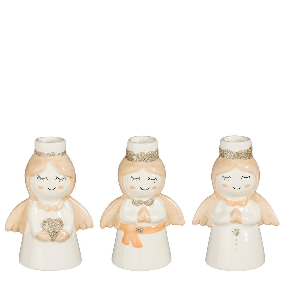 Kandelaar engel wit 3 assorti - l9xb6,5xh14cm