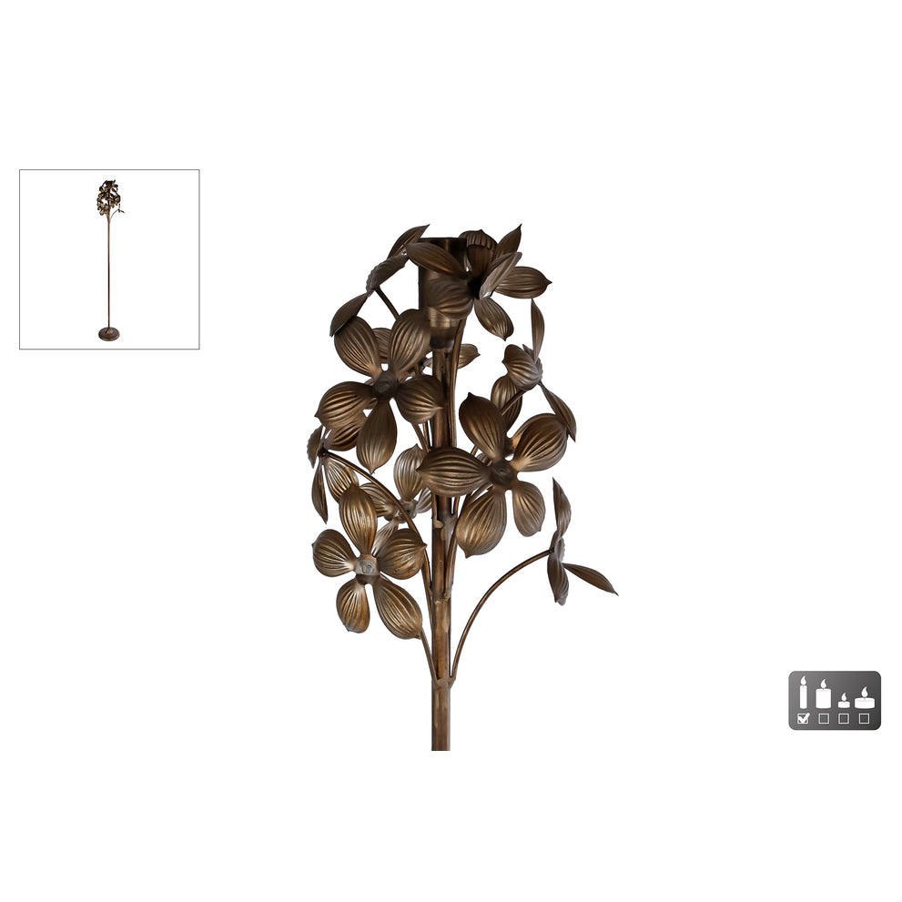 Kandelaar "Flowers" XL antiek goud metaal 17x17x93cm