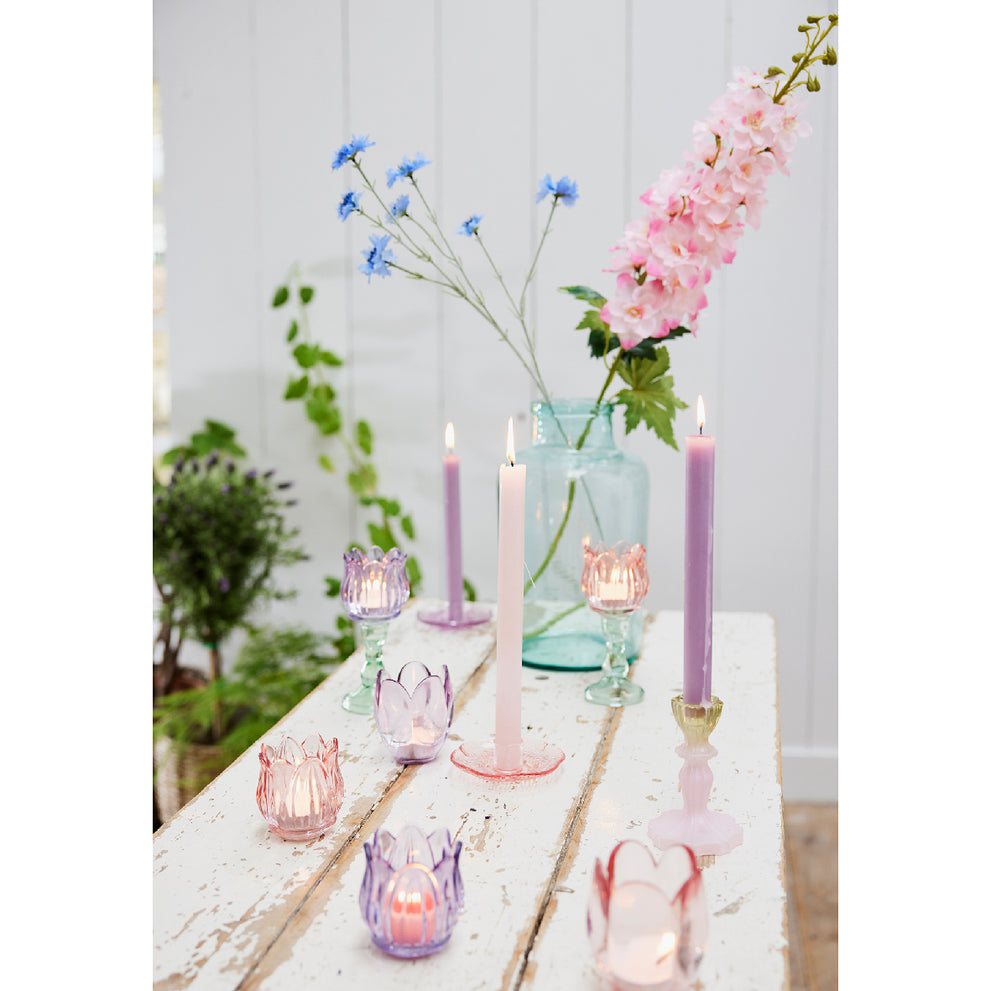 Kandelaar glas 2col ass D10,5 H3,2cm