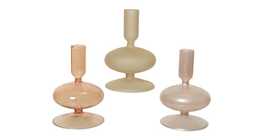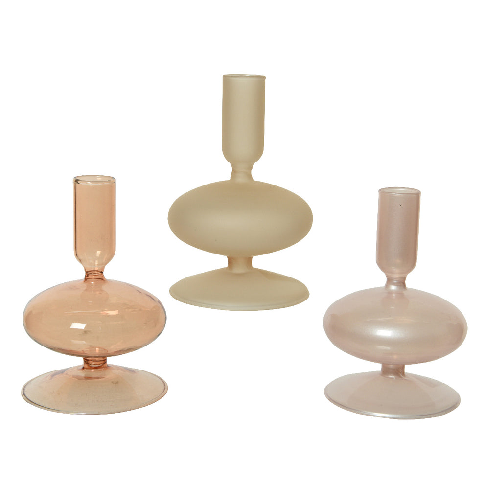Kandelaar glas shiny w spray color 3kl.assortie dia8.5-H12cm