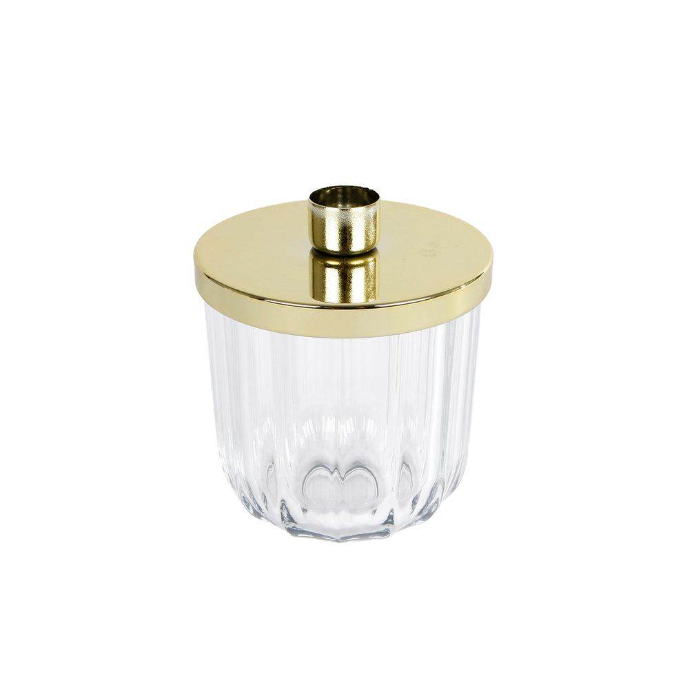 Kandelaar "Luna" L helder/goud metaal/glas 9x9x11,5cm