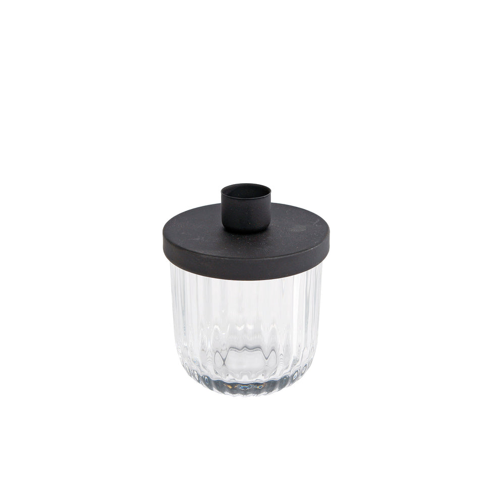 Kandelaar "Luna" S helder/zwart metaal/glas 7,5x7,5x10cm