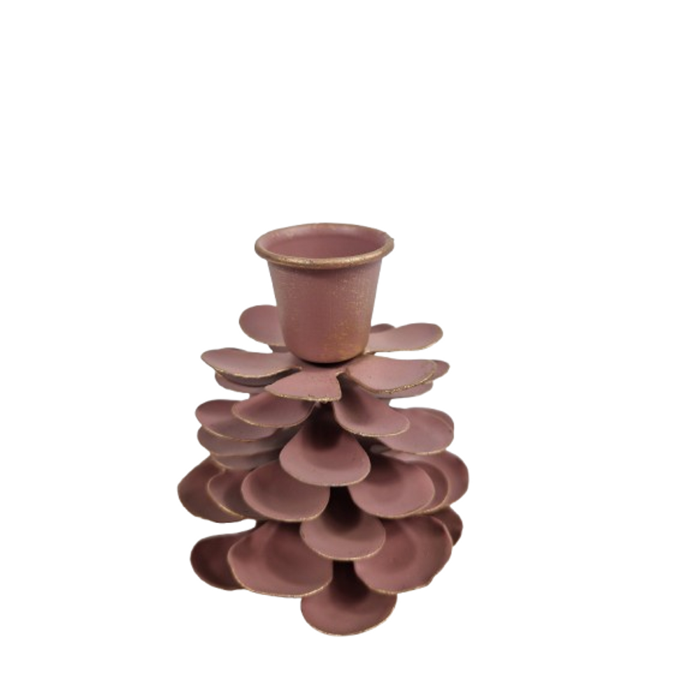 Kandelaar "Pinecone" S roze metaal 7,5x7,5x9cm