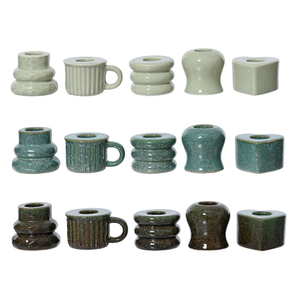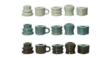 Kandelaar porselein 15 assortie kaki/turqoise/groen D5 H5cm