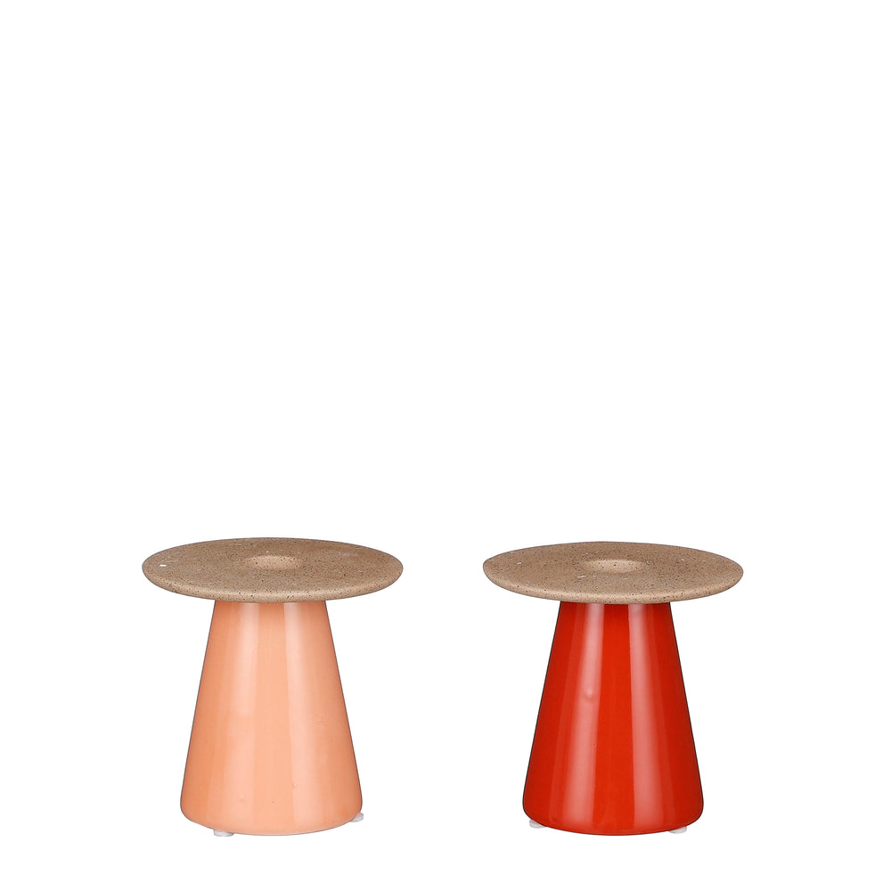 Kandelaar roze oranje 2 assorti - h9,5xd10cm