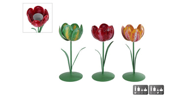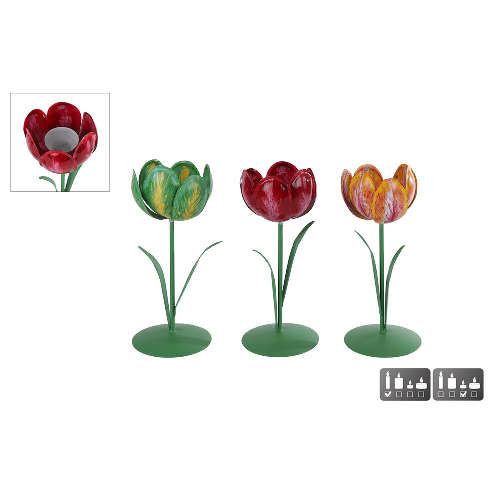 Kandelaar/theelichth "Tulip" S 3 assortie metaal 8x8x20cm