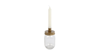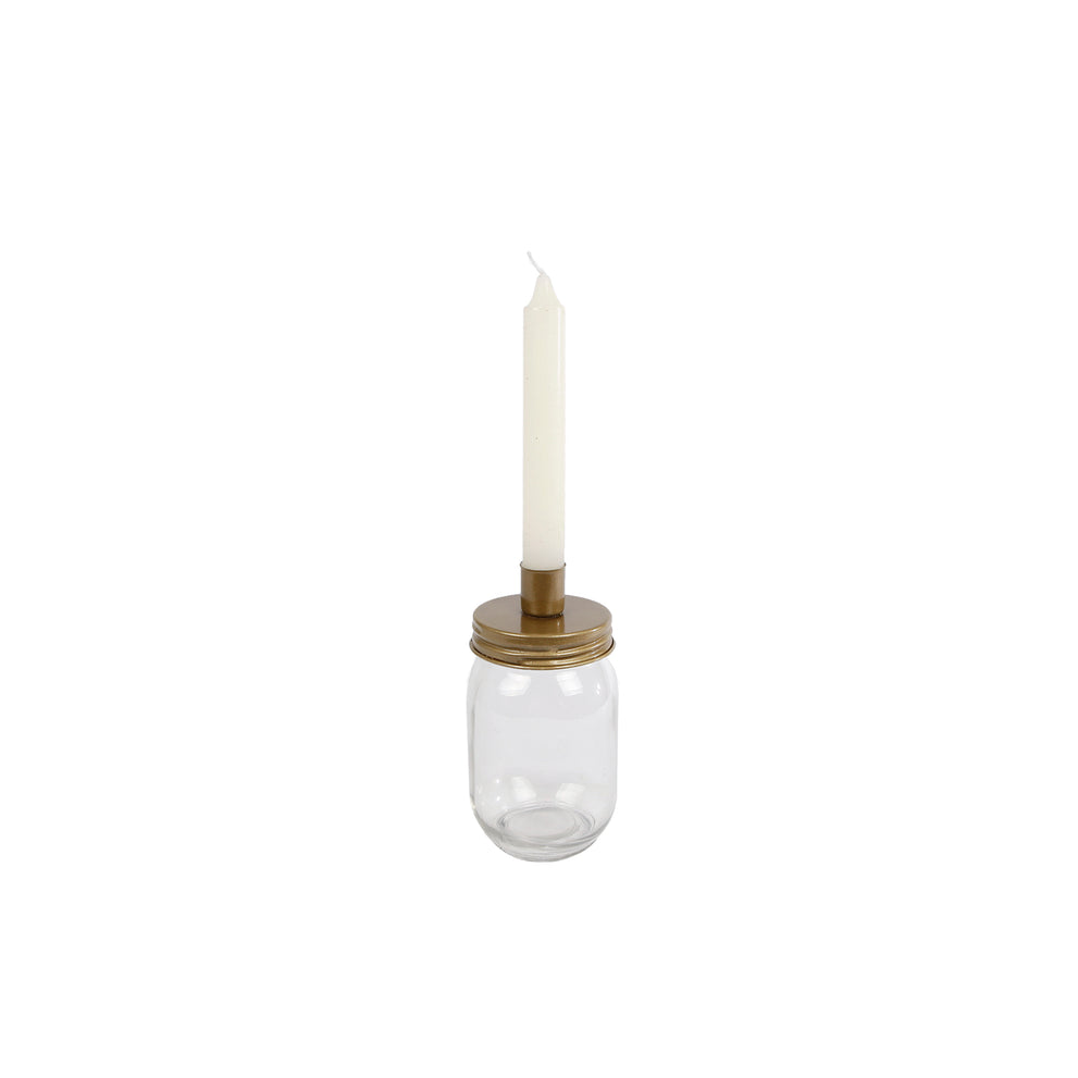 Kandelaar "Yanika" S helder/goud metaal 8x8x15,5cm (exclusief kaars)