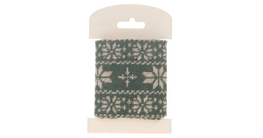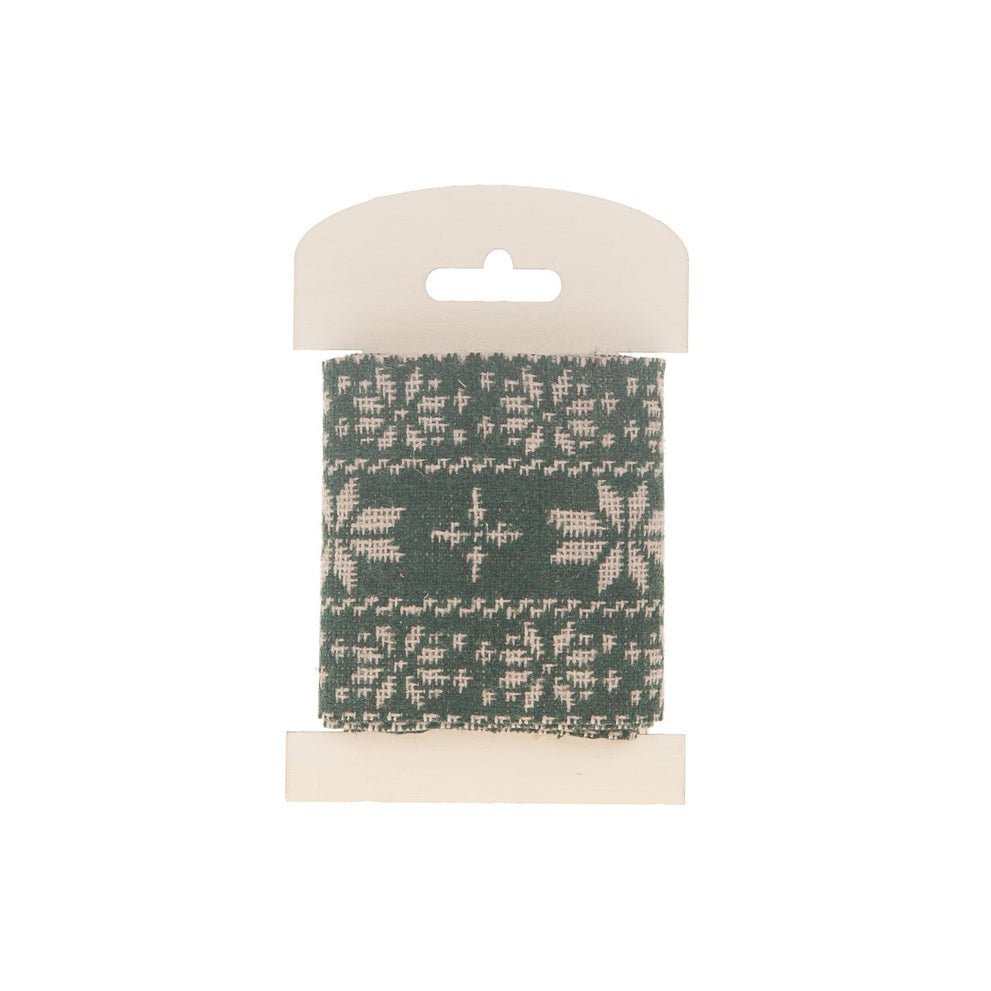 Katoenen lint met sneeuwvlokken print 106x8cm groen