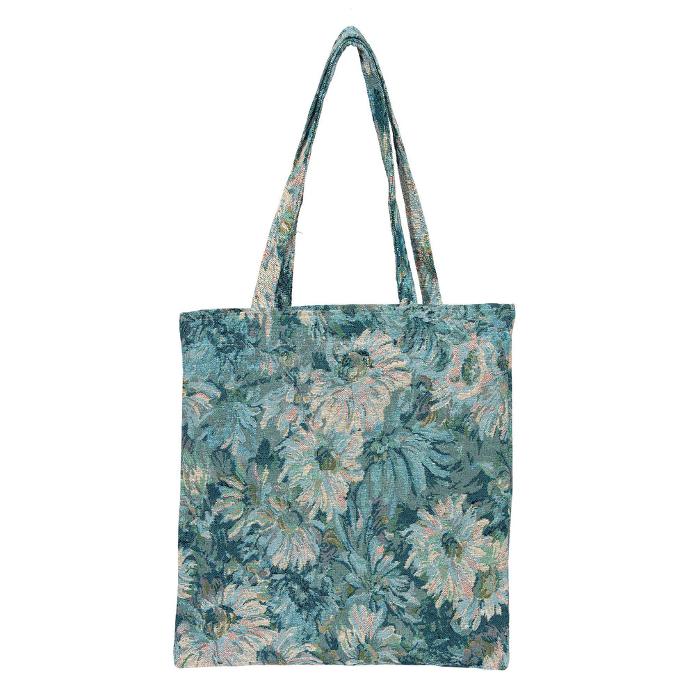 KATOENEN TAS BLOEMEN OPDRUK BLAUW 42X38CM