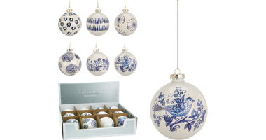 KERSTBAL 80MM DELFT BLAUW 6 ASSORTIE