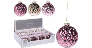 KERSTBAL GLAS 80MM 3 ASSORTIE ''LILA''