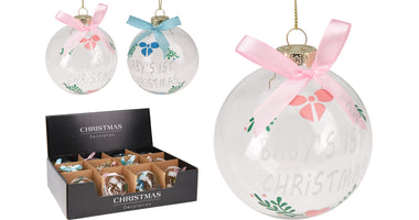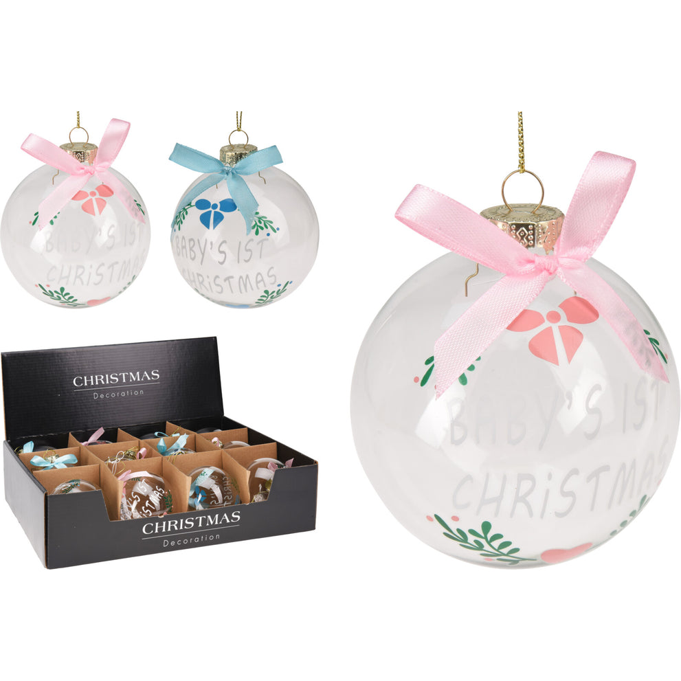 KERSTBAL GLAS BABY TEKST D8 CM 2 ASSORTIE KLEUR