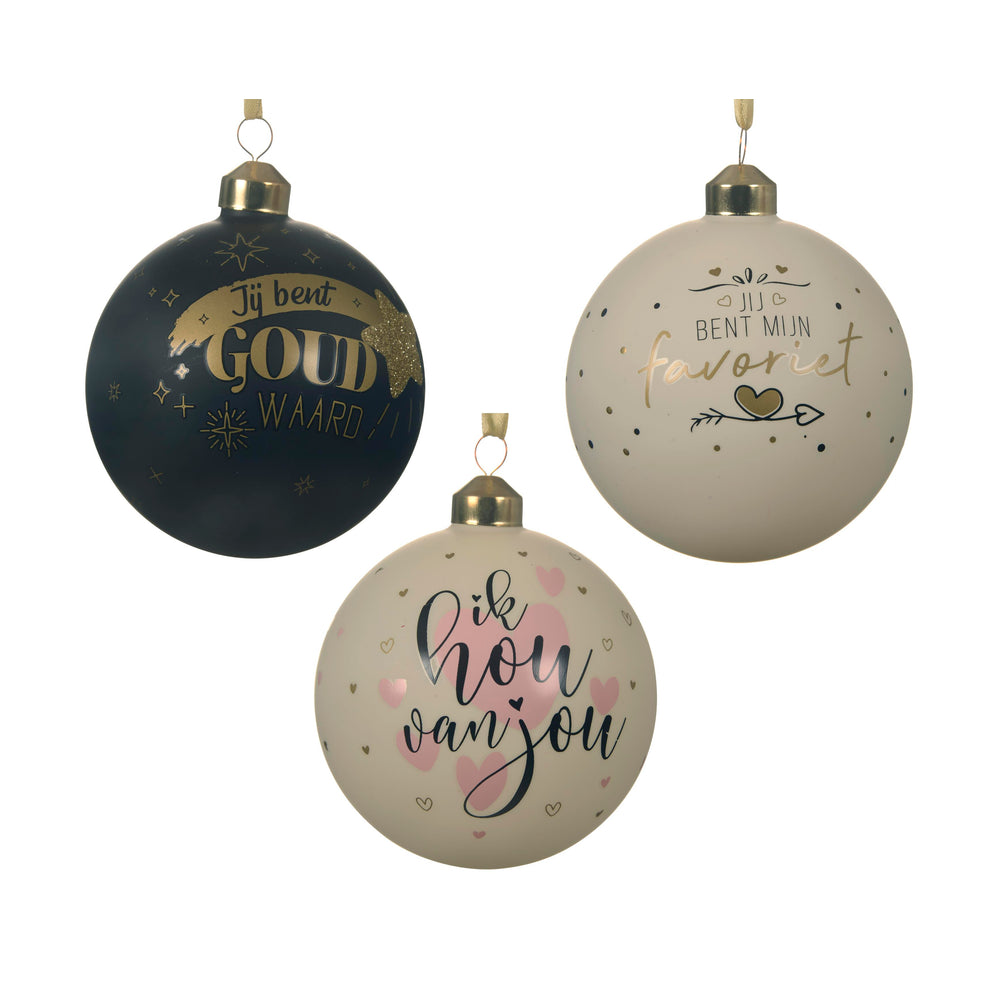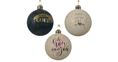 Kerstbal glas dutch text decals 3 assortie D.10cm