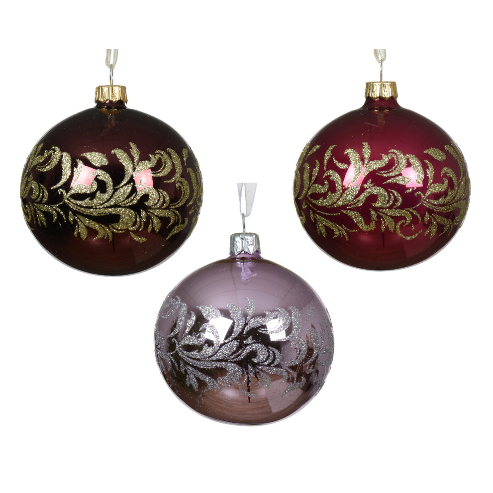 Kerstbal glas glitter deco 3 kleur assortie D8cm