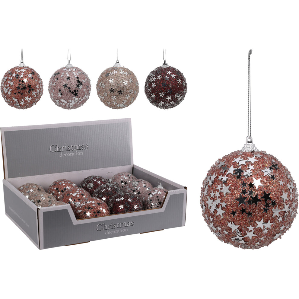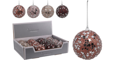 KERSTBAL POLYFOAM D8 CM GLITTER WINTER WARM 4 ASSORTIE KLEUR