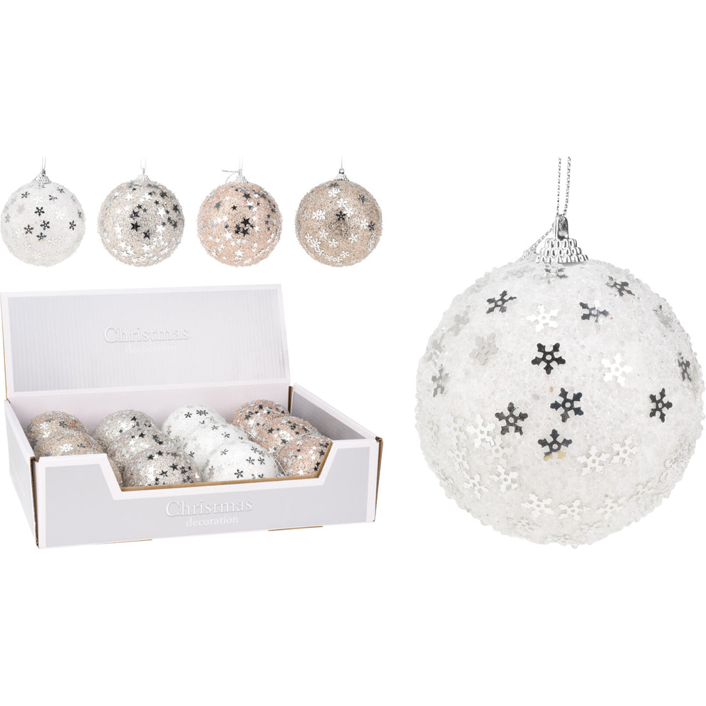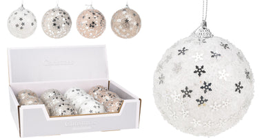 KERSTBAL POLYFOAM D8 CM GLITTER WINTER WHITE 4 ASSORTIE KLEUR