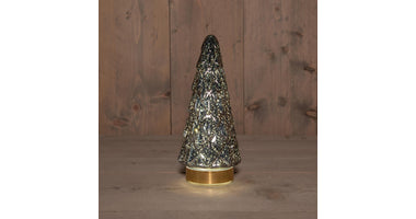 KERSTBOOMPJE GLAS 10LED OP BATTERIJ MET TIMER 24.5X10.5CM ANTRA