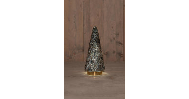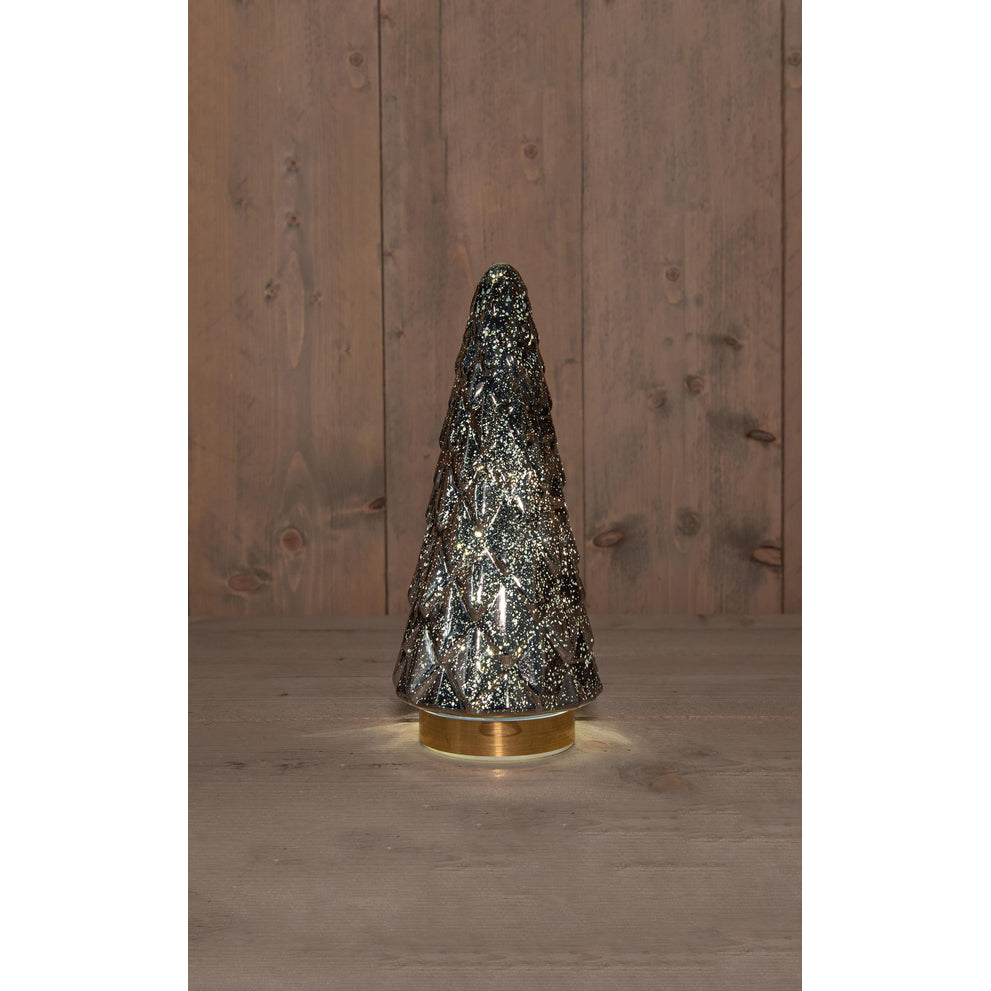 KERSTBOOMPJE GLAS 10LED OP BATTERIJ MET TIMER 28.5X13CM ANTRA