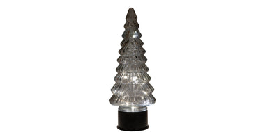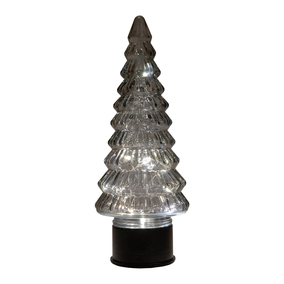 KERSTBOOMPJE GLAS DRAAIEND 20LED 3XAA BATTERIJ MET TIMER 13XH35CM GRIJS
