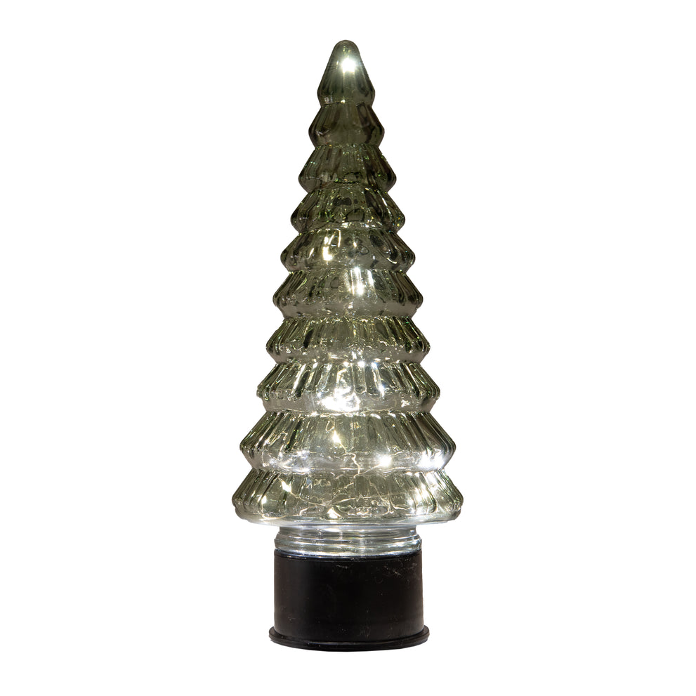 KERSTBOOMPJE GLAS DRAAIEND 20LED 3XAA BATTERIJ MET TIMER 13XH35CM GROEN