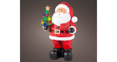 Kerstman polyresin met Led lampjes multi 34x42x63cm