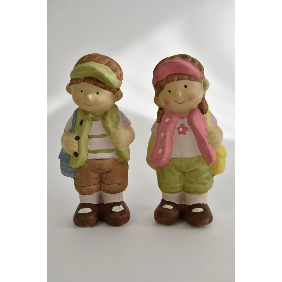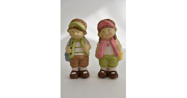 Kind met staand 2 assortie 7,5x6x16cm keramiek Groen en Roze