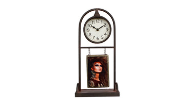 Klok met fotolijst "Perth" zwart/wit metaal 20x8x44cm