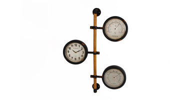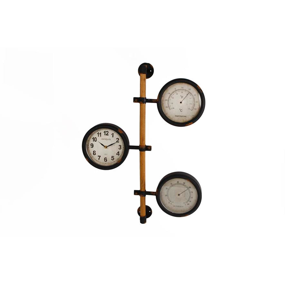 Klok thermometer en vochtigheidsmeter bruin 52x8x72cm