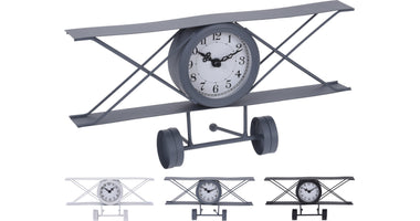 KLOK VLIEGTUIG MODEL METAAL 30X9X15CM 3 ASSORTIE KLEUR