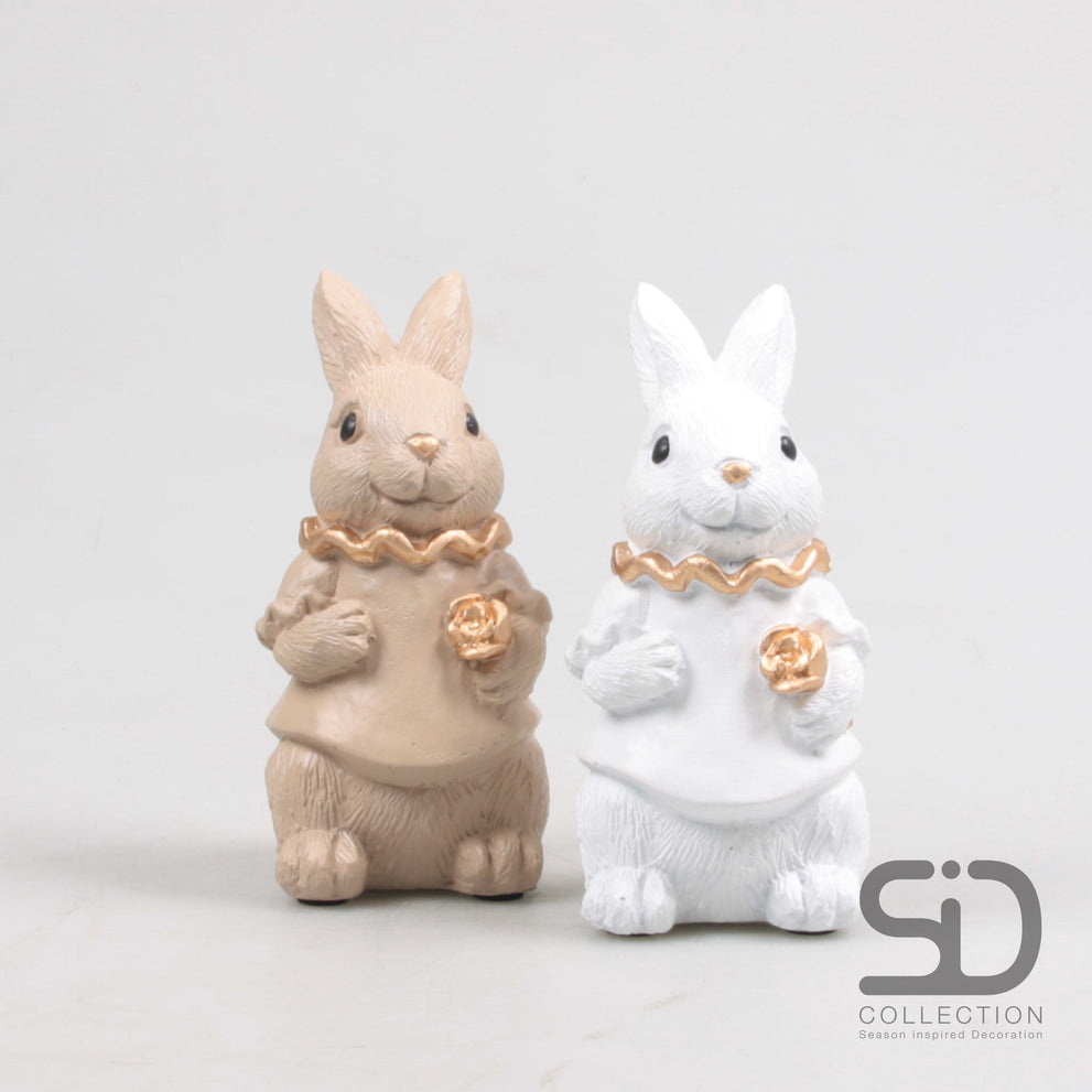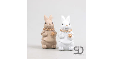 KONIJN MET BLOEM 2 ASSORTIE 7.7X6.3X14.5 CM CAMEL-WIT CEMENT
