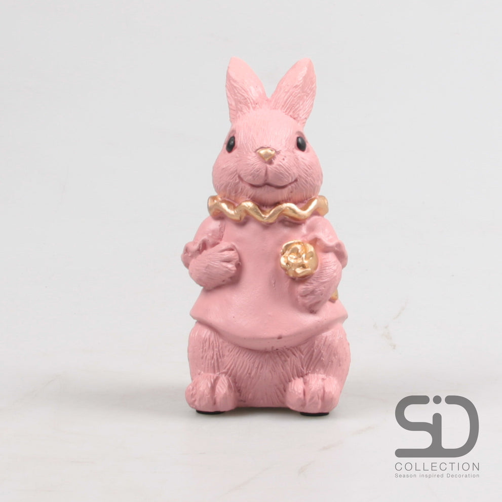 KONIJN MET BLOEM 7.7X6.3X14.5 CM PINK CEMENT