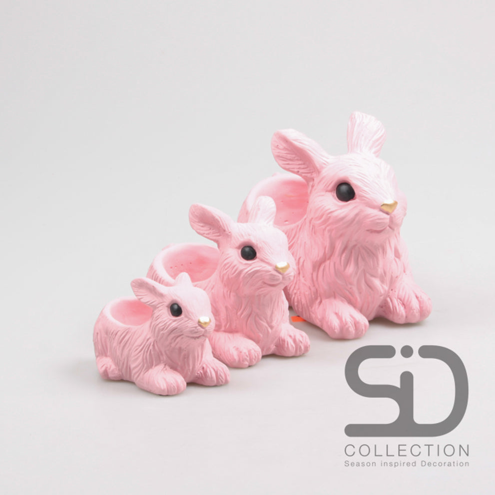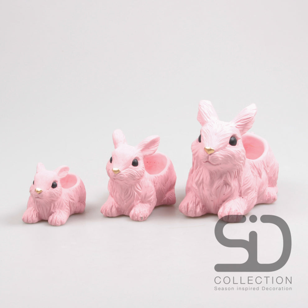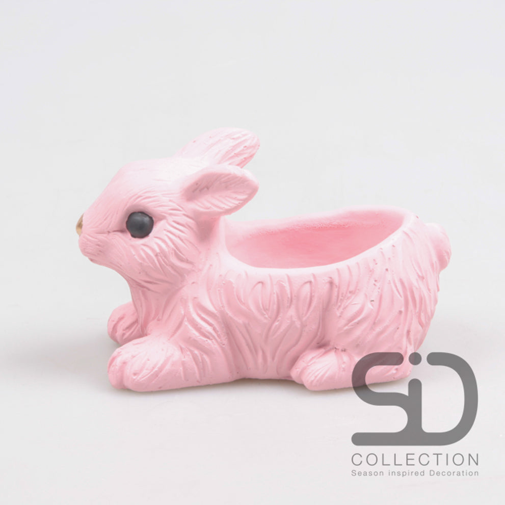 KONIJN MET PLANTER CEMENT 13.5X7.5X8 CM ROSE