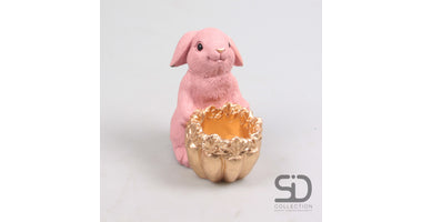 KONIJN MET SCHAAL 18X11X19.5 CM PINK CEMENT