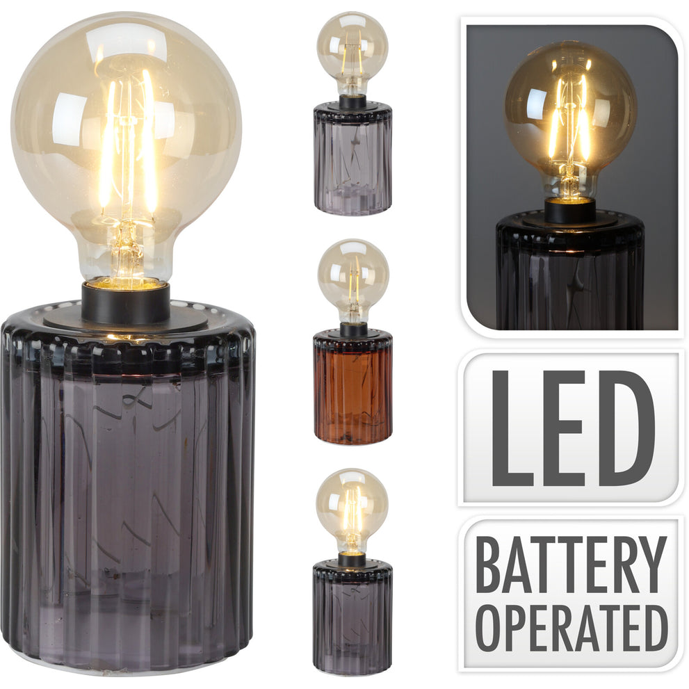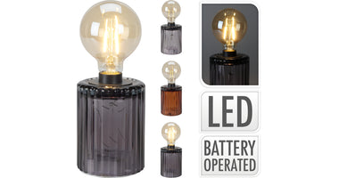 LAMP OP GLAZEN BASIS D9 H24CM 3 ASSORTIE KLEUR EXCL 3XAA BATTERIJ
